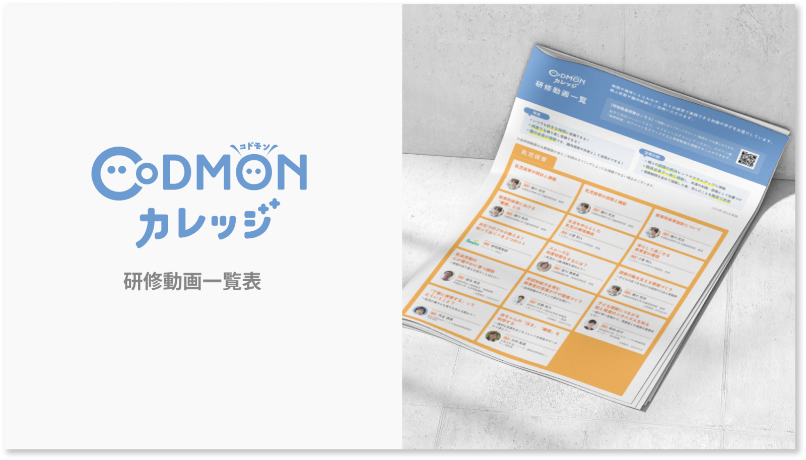 コドモンカレッジ内にある研修動画の一覧を確認できる資料です。年間研修計画に取り入れる際や職員へ希望の研修を募る際などご利用ください。