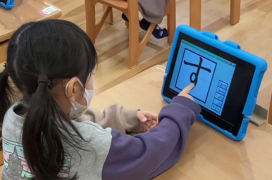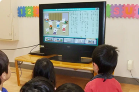 モニターに映しての集団での学びも、園児毎の個別最適化学習にも。教室の状況に応じて使い分けが可能です。